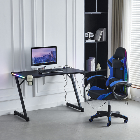 Sıcak satış ev siyah ofis bilgisayar masası Z şekilli bacaklar oyun masa Led ışık masası seti Rgb oyun masa