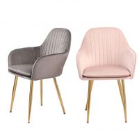 Toptan Modern pembe yemek sandalyeleri altın Metal bacaklar kol dayama kadife restoran sandalye ile okul ve spor salonu ışık özelliği